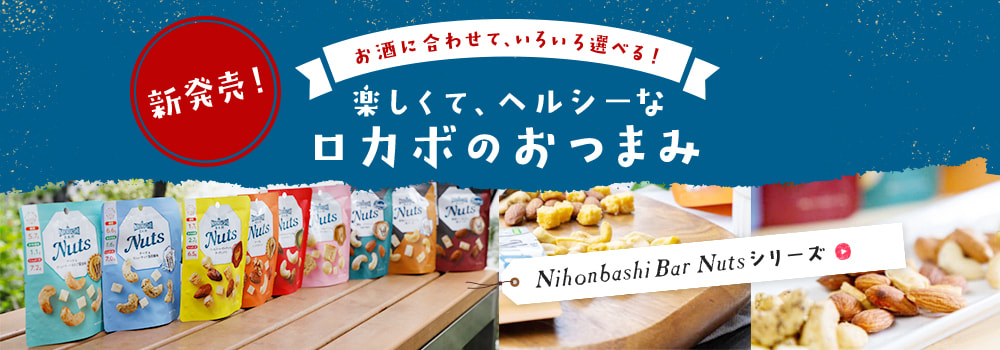 NihonbashiBarは、お酒のお供、おつまみです。 美味しく、癒しや健康感があり、 お酒とのマッチングを楽しめるおつまみシリーズです。