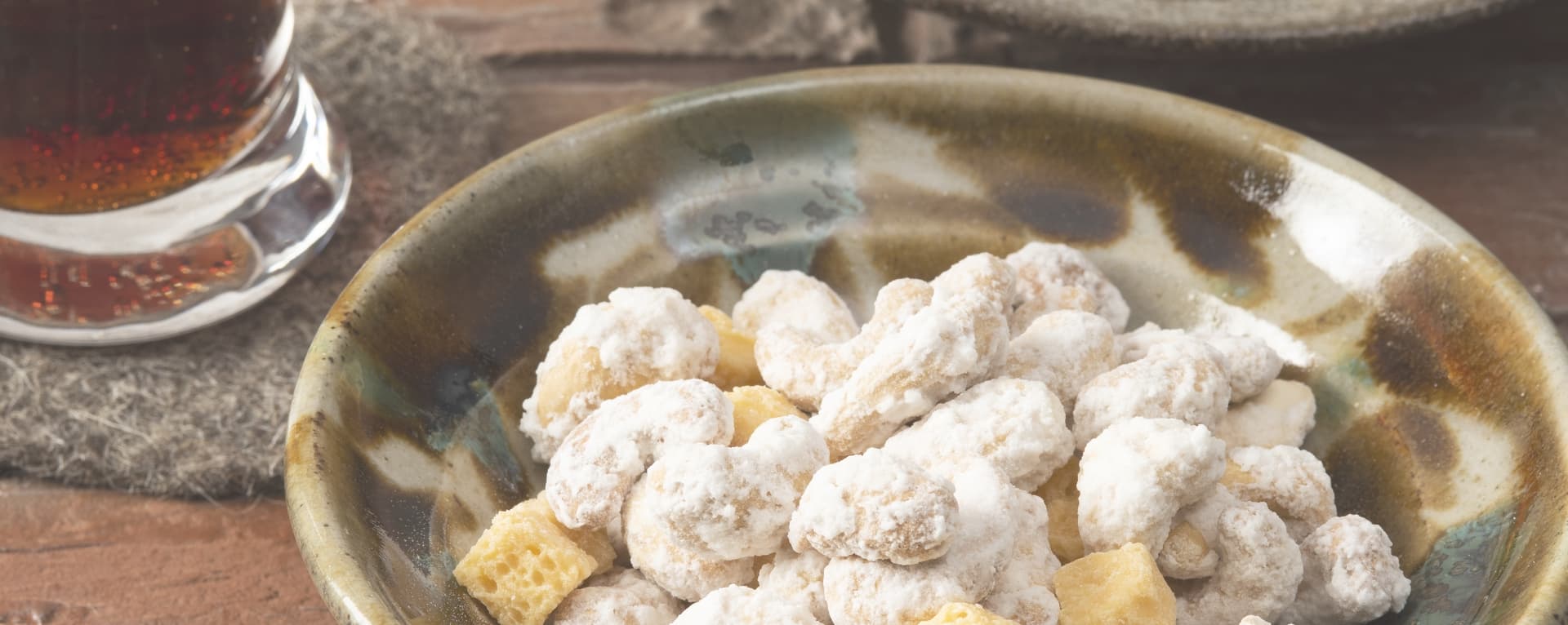 ブランデー(V.S.O.P)の粉末酒を使用。後をひく上品な甘さをお楽しみください。