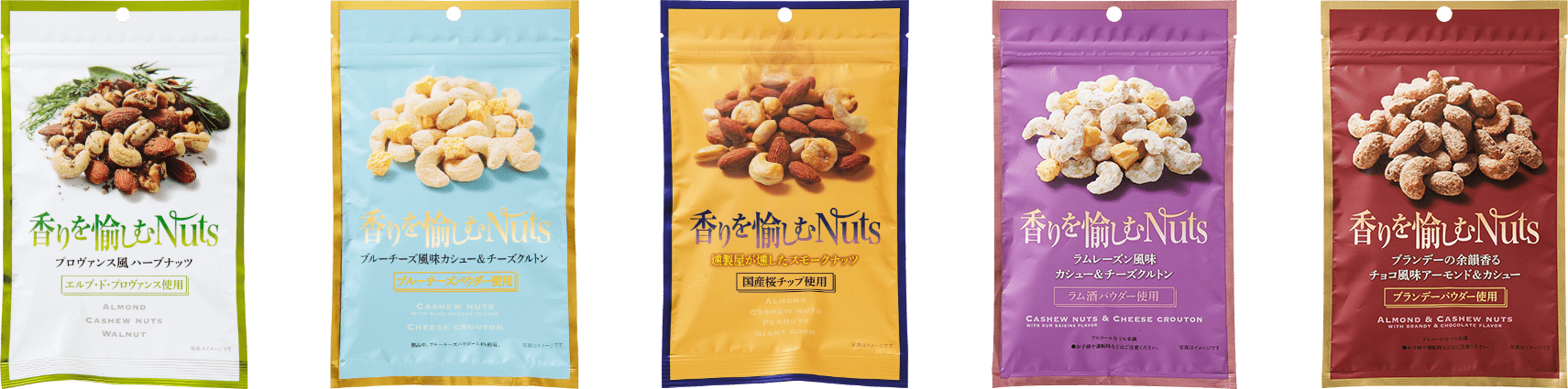 それぞれの「香り」とナッツの味との調和を、是非お愉しみください。