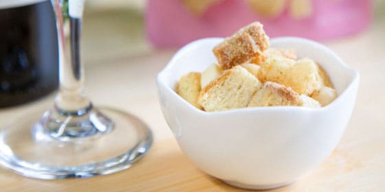 さっぱりと軽い味わいの白ワインは、ナッツの芳醇な香りを一層引き立たせ、コクのある白ワインには濃厚なチーズクルトンが合います。